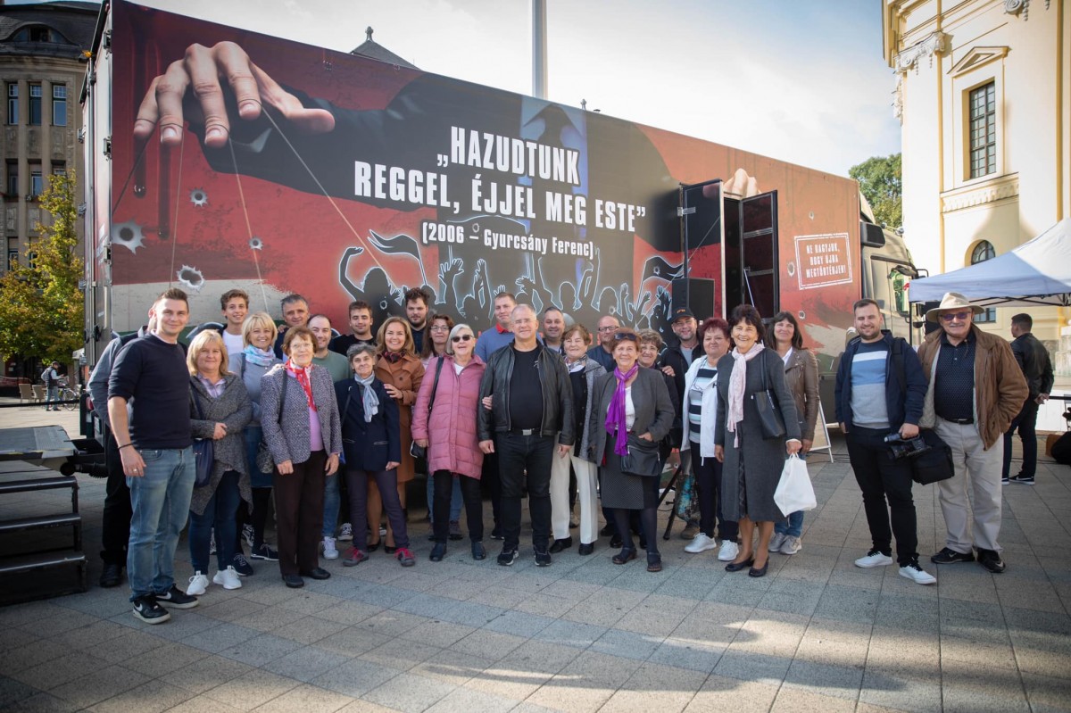 A 15 évvel ezelőtt hangoskodó “bajkeverőkre” emlékezett ma Kósa Lajos sokadmagával a 2006-os tüntetéseket bemutató vándorkiállítás előtt.