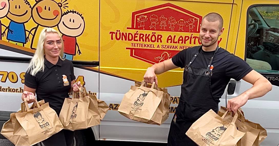 A debreceni Tündérek 30 db első osztályú Szmöre Burgert és nagy sült krumplit vittek egy olyan kollégiumba, ahol sérült gyerekeket gondoznak a hétvégén.