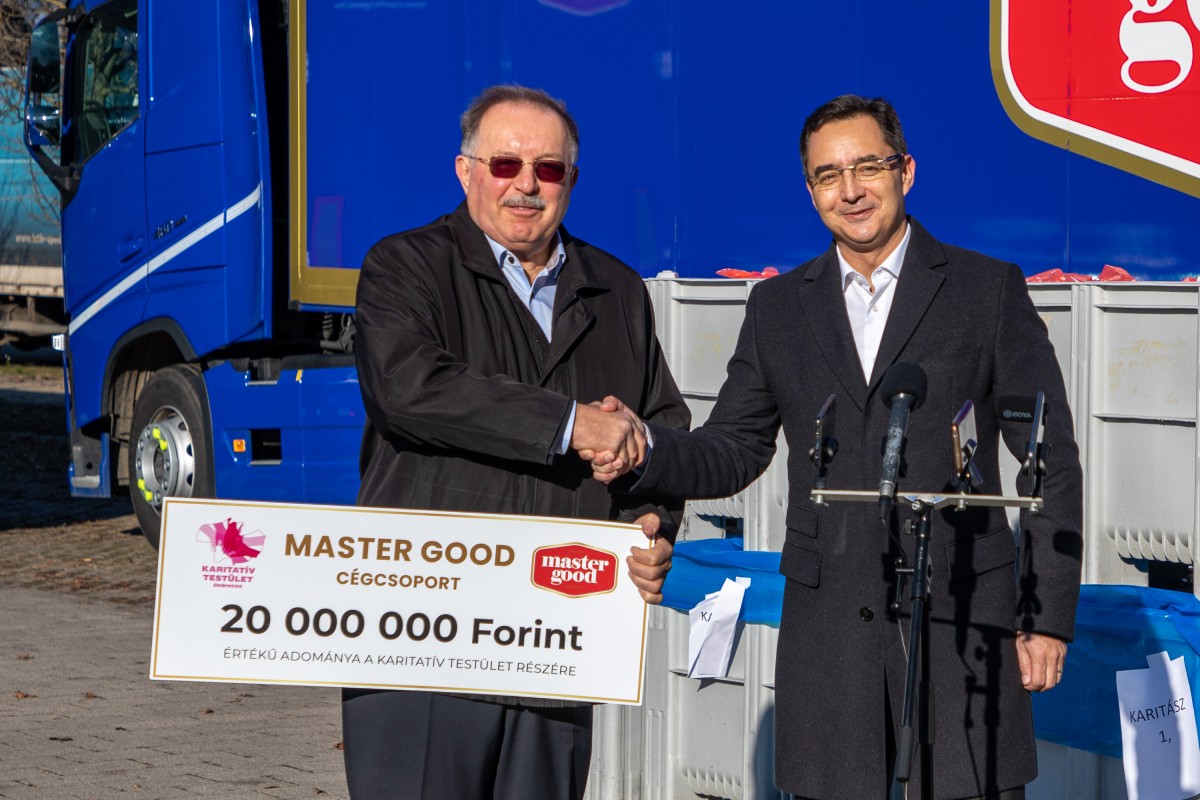 Mint azt idősebb Bárány László elmondta, lassan hagyománnyá válik, hogy a Master Good karácsony közeledtével kifejezi elkötelezettségét Debrecen városa és a városban élő rászorulók iránt. Adni jó, s a cég most ismét ezzel az adománnyal jelzi azt, hogy figyel azokra a rászorulókra, ahol a család élelmezése szempontjából egy baromfitermékekből álló élelmiszercsomag is nagyon sokat jelenthet. A cég adományának összértéke a múlt évben 10 millió forint volt, az idén pedig ennek kétszerese, 20 millió forint. Bárány László jelezte, hogy a Master Good a karácsonyt megelőző hetekben a jövőben is gondol majd a rászoruló debreceniekre.