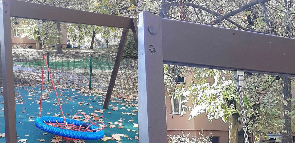 Egy debreceni hírportálnak küldött olvasói levélből kiderül, hogy a Doberdó-Böszörményi sarok mögötti játszótéren a hintát leszakadva találták. A faszerkezetből egy fő tartócsavar is hiányzott.