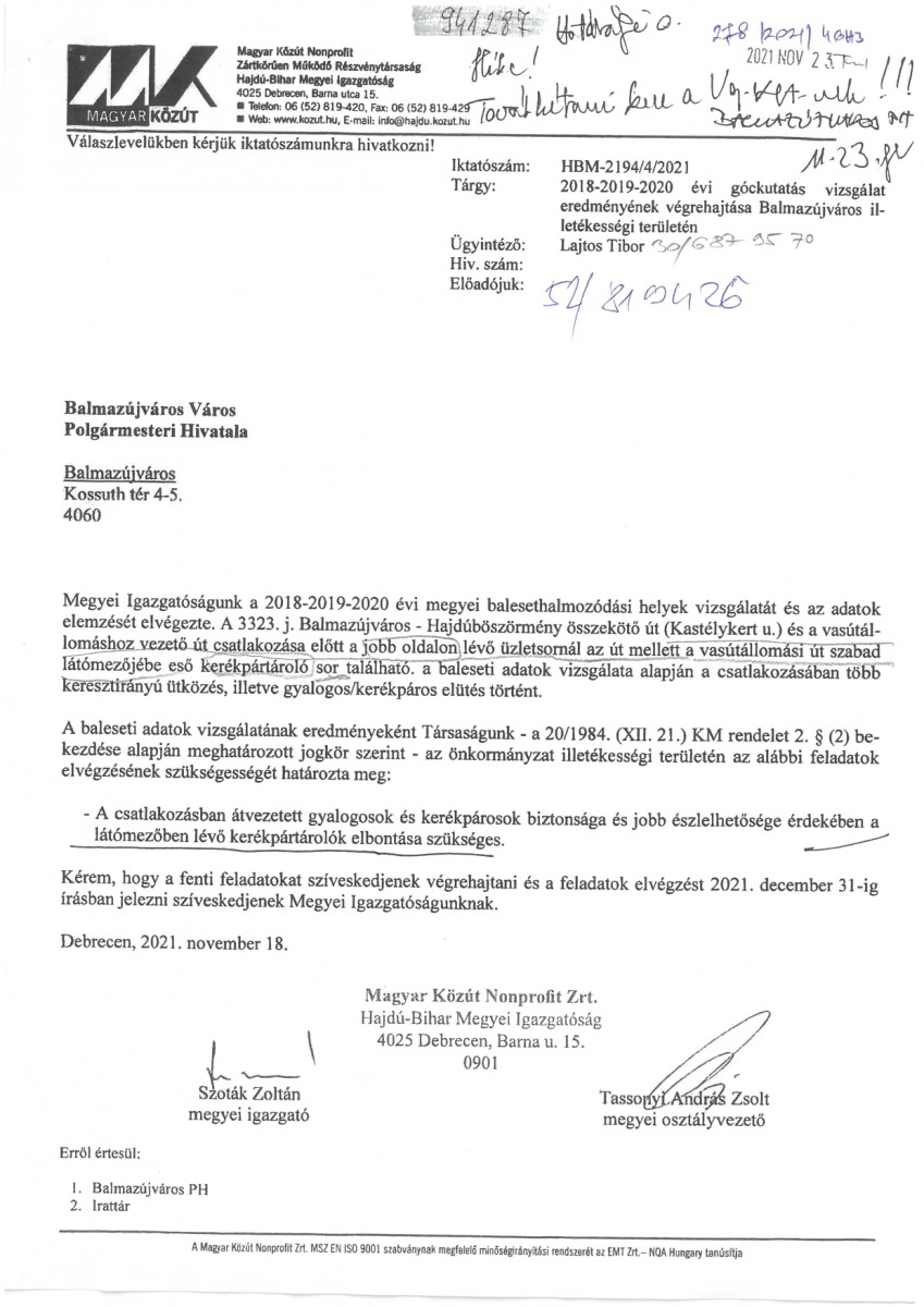Többen rosszallásuknak adtak hangot azzal kapcsolatban, hogy a Városgazdálkodás megszüntette a Kastélykert utca jobb oldalán lévő boltok (presszó, zöldséges, élelmiszer bolt, virágbolt, kávézó) előtti kerékpártárolókat. Szeretnék tájékoztatni mindenkit, aki ezzel kapcsolatban érdeklődött és véleményt nyilvánított, hogy a bontást nem a VGKFT. határozta el, hanem a Magyar Közút Zrt. kötelezett bennünket a végrehajtásra. Természetesen mi sem értünk ezzel egyet. Próbálunk magyarázatot kérni az intézkedésre, de eddig eredménytelenül. A balesetveszélyre történő hivatkozást -amit részletesebben nem indokoltak meg- továbbra is fenntartja a Magyar Közút Zrt.