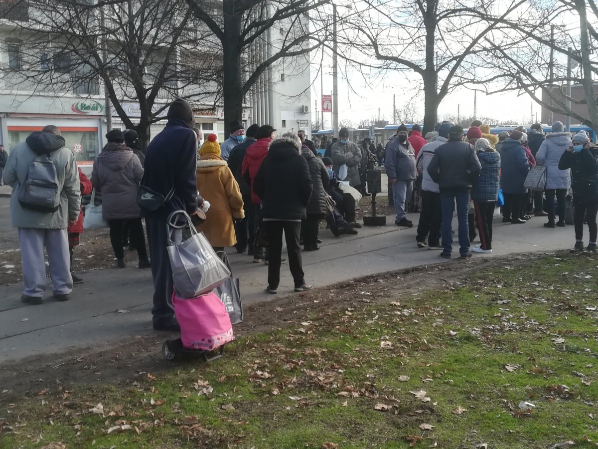 A Morzsaparti kezdete előtt egy órával már legalább negyvenen várták, hogy sorra kerüljenek. A hideg ellenére egyre nőtt a számuk, a Morzsaparti végére becslésünk szerint közel 200 főt tudtunk megvendégelni. Voltak, akik otthon maradt hozzátartozójuknak is vittek ebédet.