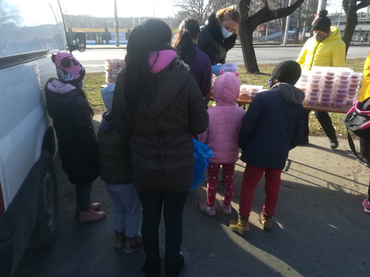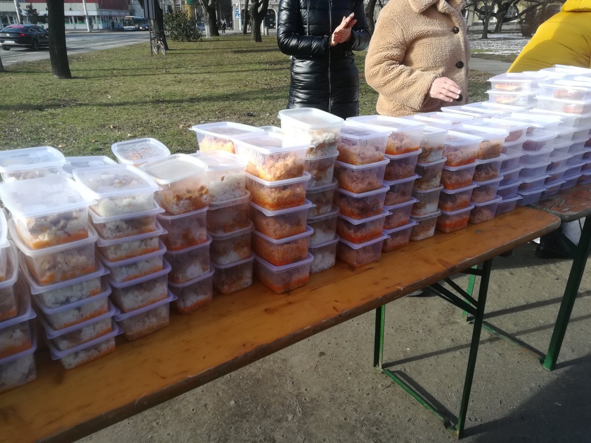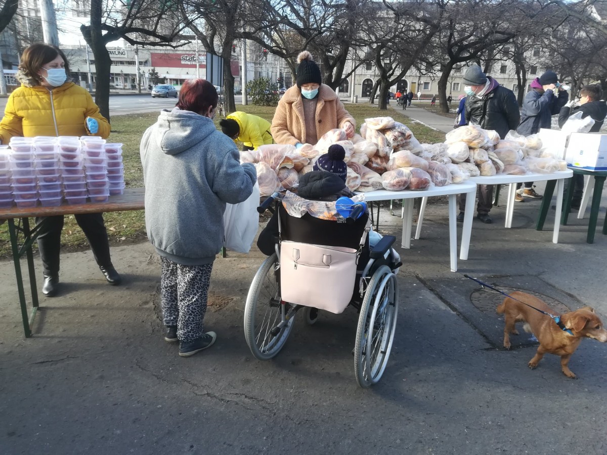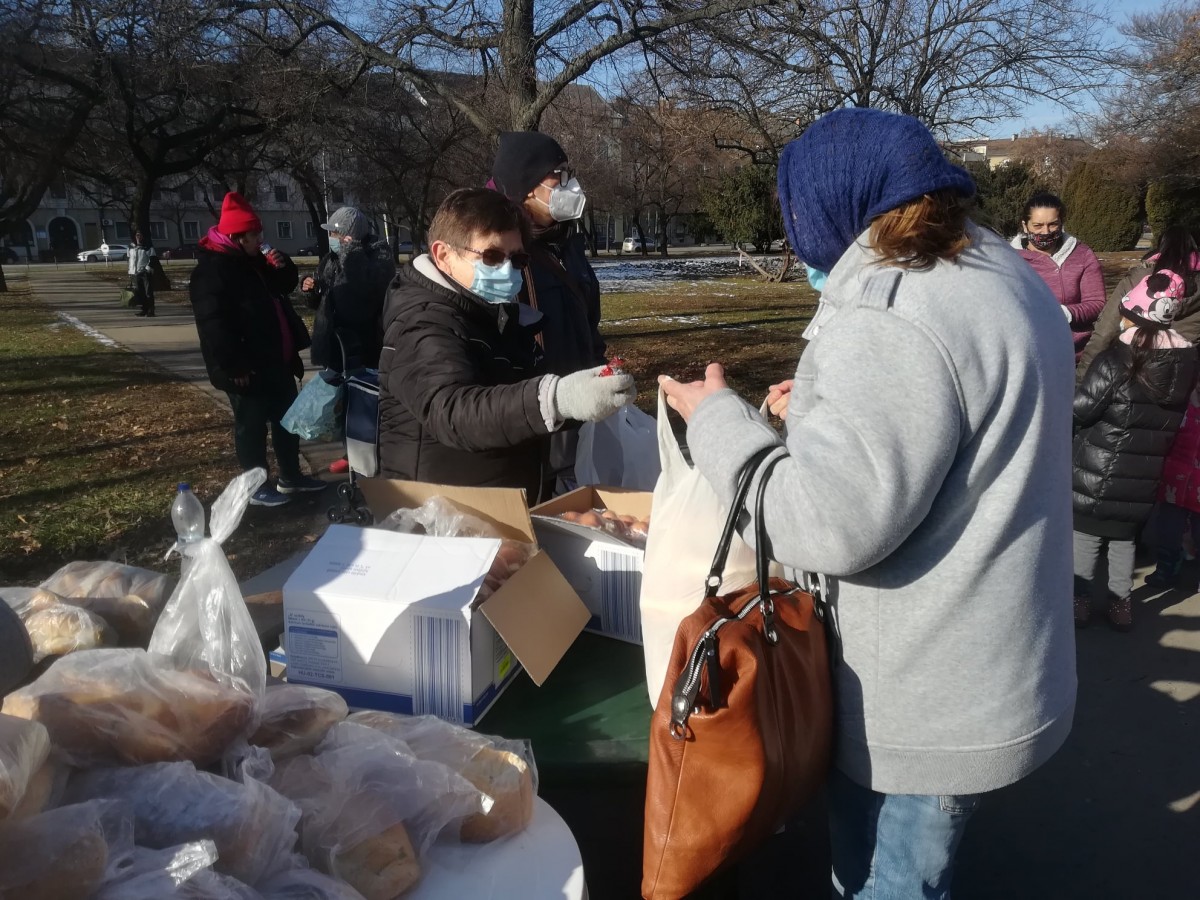 Kértük, hogy az ételre várók maszkot hozzanak magukkal. Ügyeltünk arra, hogy a sorban állók között 1,5 méter távolság legyen. Helyszíni fogyasztás a járványra tekintettel nem volt, mindent előre csomagoltunk.