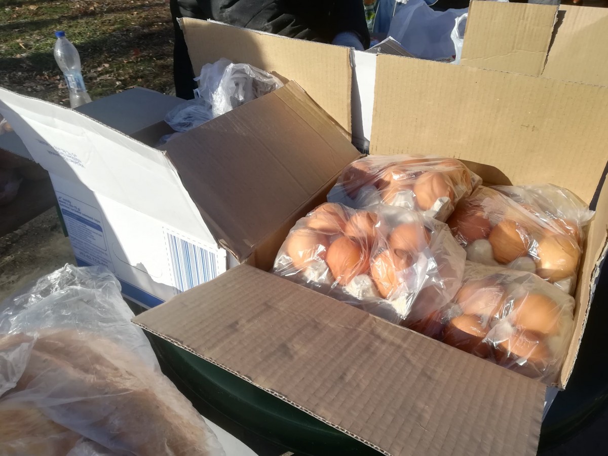 A menü igazán változatos volt: rizses hús, rengeteg péksütemény, kenyér, tojás, fánk, és gyerekeknek édesség várta azokat, akik hétvégén nem engedhetik meg maguknak, hogy főtt ételt egyenek.