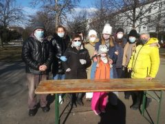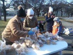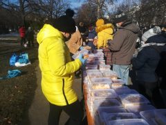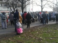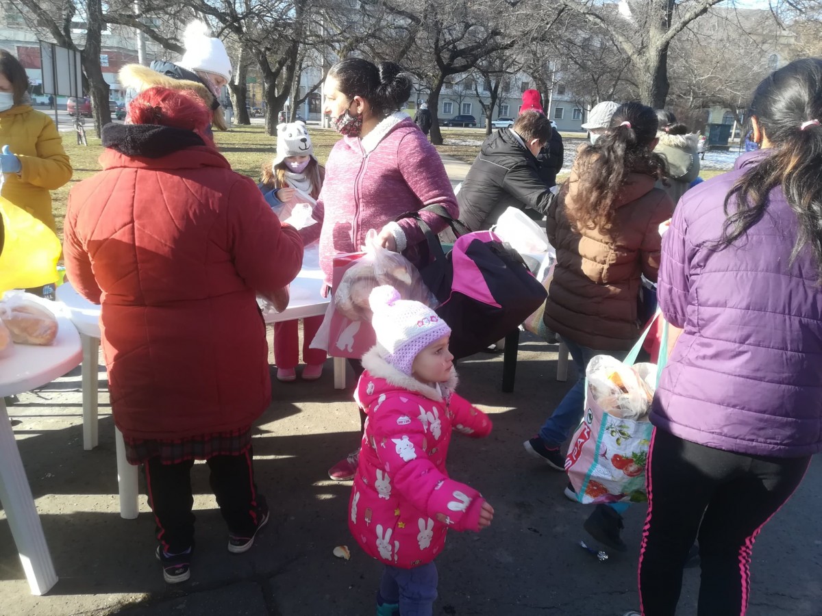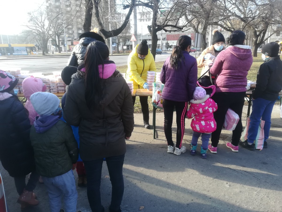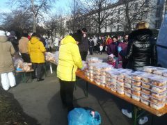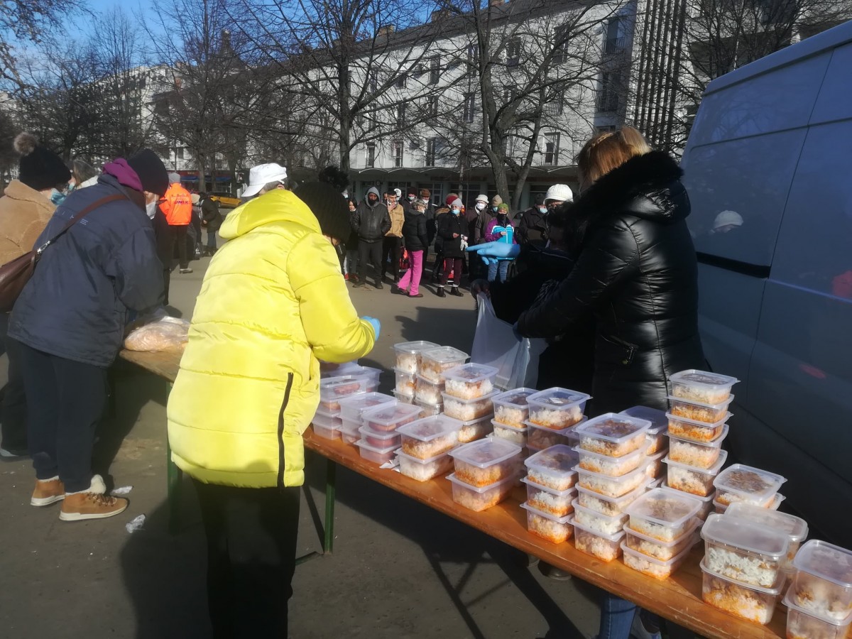A hőmérő 10 órakor, minusz három fokot mutatott, szerencsére sütött a nap, nem fújt a szél, így a hőérzet kicsit talán más volt. Sajnos nincs olyan lehetőségünk, hogy ne az utcán kelljen ételt osztanunk, így ha esik, ha fúj, hidegben, melegben várjuk tiszta szívvel, szeretettel vendégeinket. Hiszünk abban, hogy a jóság nem kerül pénzbe.