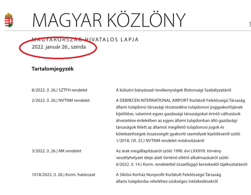 A Debreciner vette észre, hogy a Magyar Közlönyben már egy nappal az önkormányzat döntése előtt megjelent a tulajdonjog átruházás ténye: