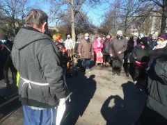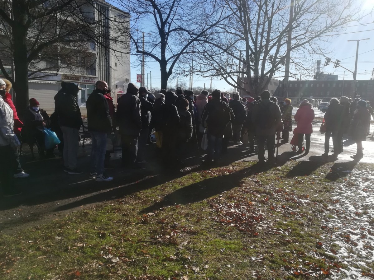 Ez a debreceni ételosztás kicsit más volt, mint az előzőek. Rövid beszéddel, egyperces csenddel, lehajtott fejjel emlékeztünk meg a napokban elhunyt barátunkról, ételosztó társunkról, Varga Ferencnéről, akit mindenki “ételosztó” Katikaként ismert. A megemlékezésen ott voltak Katika hozzátartozói, a gyászoló család tagjai is.
