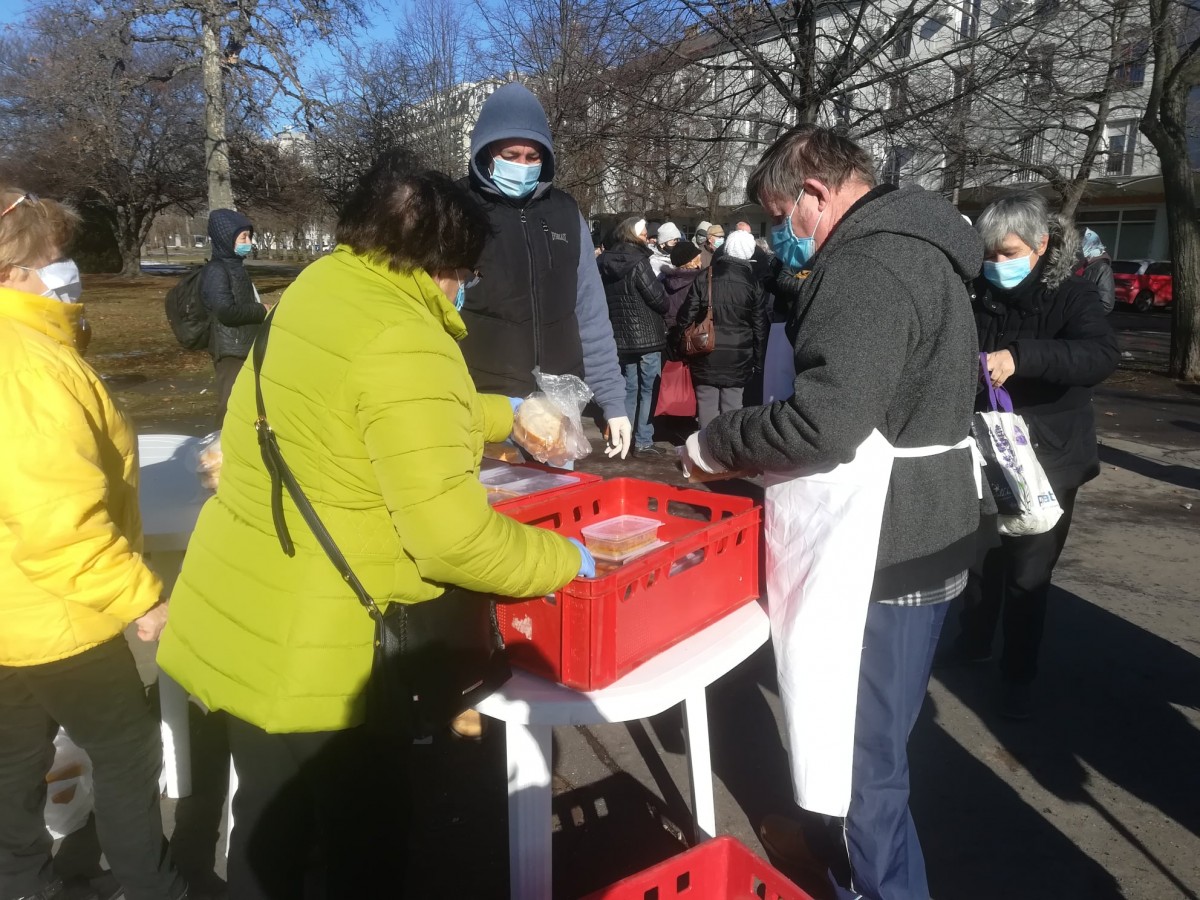 A Kéretlen Figyelem Debreceni Nők Közéleti Egyesülete a Petőfi térre ismét vendégségbe hívta a városban élő szegényeket, a közmunkából tengődő családokat, a magukra maradt kisnyugdíjasokat, a fedél nélkül élőket. Az ingyenes ételosztáson egy tál meleg ebéddel, friss kenyérrel várták a rászorulókat. A menü, ahogyan azt korábban megszavazták a vendégek, töltött káposzta volt.