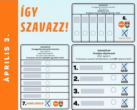 Az ábrán vizuális segítséget kívánnak nyújtani azoknak, akiknek nehezésre esne esetleg megtalálni az „X helyét” a szavazólapon. A példa ragadósnak tűnik Tasó László is szívesen alkalmazza saját oldalán.