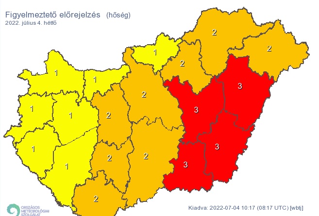 Az országos tisztifőorvos múlt hétfőtől rendelte el – eredetileg csütörtök éjfélig – a legmagasabb, harmadfokú hőségriasztást. Ezt közben július 4., hétfő éjfélig hosszabbította meg.