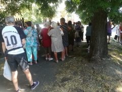 Ahogyan az utóbbi években mindig, most is a kisnyugdíjasok voltak többségben. Mindkét nap sok új arcot láttunk, mind többen szorulnak arra, hogy így hónap végén ételért álljanak sorba. Egy 70 év körüli hölgy igencsak kifakadt, és indulatosan mondta a körülötte állóknak: “Nem tudom, mi lesz a télen, előre rettegek. Ha a gázt használom enni nem tudok, ha eszem, akkor pedig megfagyhatok a hideg lakásban. Szégyellje magát, aki ide juttatott bennünket!”