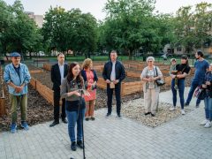 Az Újkert jelentős megújuláson ment át az elmúlt évben a Zöld Város Programnak köszönhetően. Ebben az új közösségi kertnek helyet adó tömbbelsőben is több mint 10 ezer négyzetméter gyepfelület újult meg, új cserjesorok jöttek létre, teljesen megújult a játszótér és a sportpálya, új pihenőpadok, ivókút szolgálja az itt élő debrecenieket. A cél az, hogy a lakótelepeken élőket otthonos, zöld környezet vegye körbe. Ezt a víziót erősíti ez a kert is. A mai kulcsátadás egyben egy új, zöld közösség megalakítását jelenti – emelte ki az alpolgármester.
