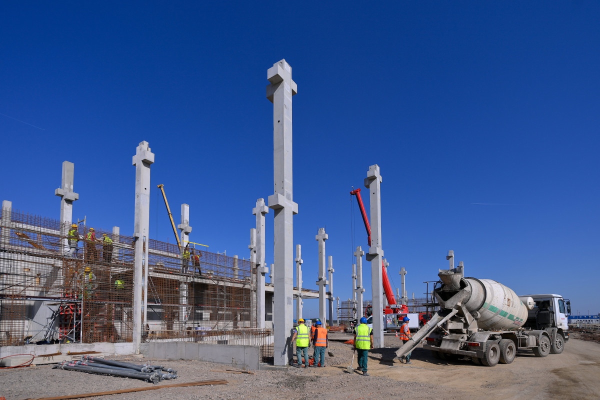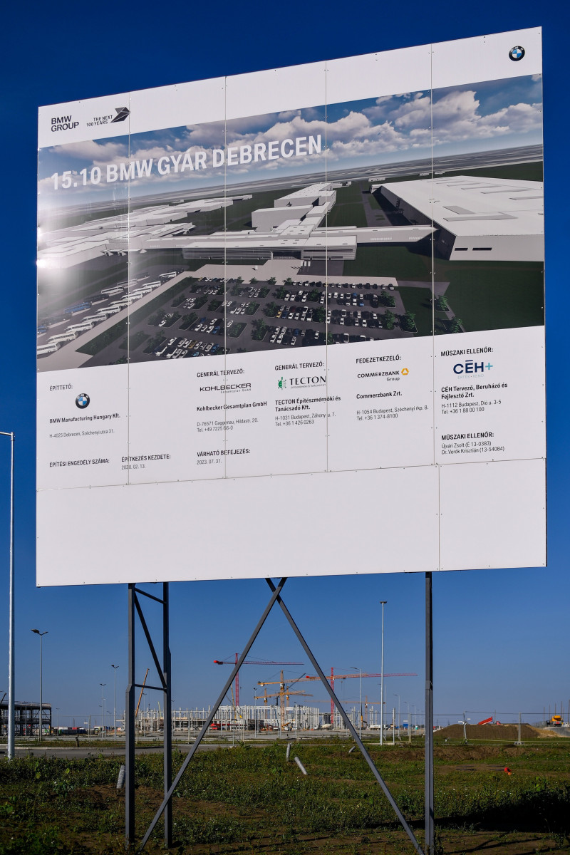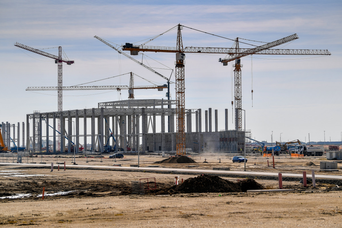 Az épülő BMW-gyárról készített fotókat az MTI Debrecenben 2022. október 10-én. A BMW Group Debrecenben 400 hektárnyi területen egy teljes értékű autógyárat épít fel présüzemmel, karosszériaépítő részleggel, fényezőműhellyel és összeszerelő csarnokkal.