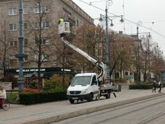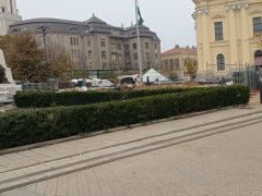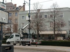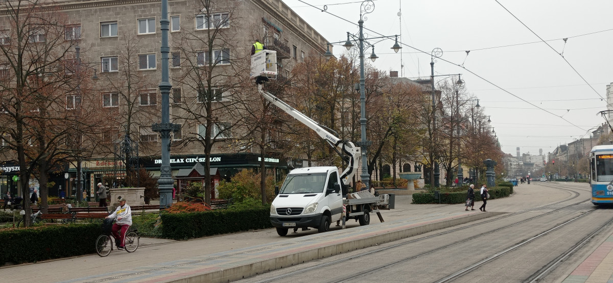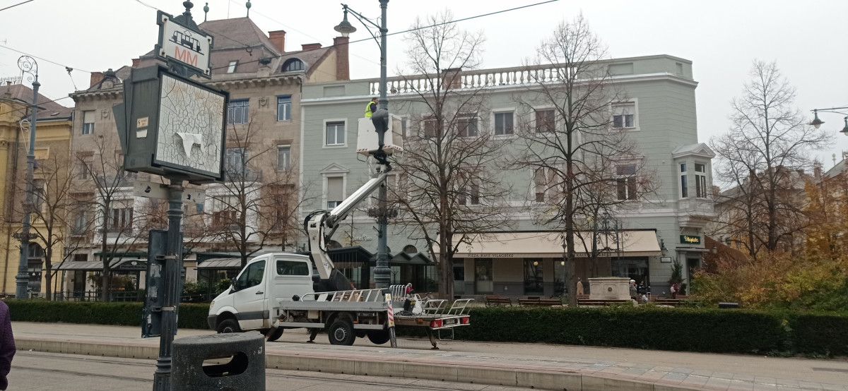 Az égősorokat is elkezdték ma kitenni a fákra, a művelethez a szakemberek egy emelőkosaras járművet is segítségül hívtak. Az egyik ott dolgozó kérdésünkre elmondta, hogy legkésőbb Advent első vasárnapjára kell készen lenniük, amikor az ünnepi fényeket felkapcsolják majd. Ebben is lesz változás az utóbbi évekhez képest, ugyanis a Piac utca és a Kossuth tér közötti szakaszon lesz díszkivilágítás, és sötétedéstől csak este tíz óráig lehet majd gyönyörködni ebben a látványosságban. Az adventi vásár állandó tartozékait az árusító bódékat pedig még ezután fogják felállítani.