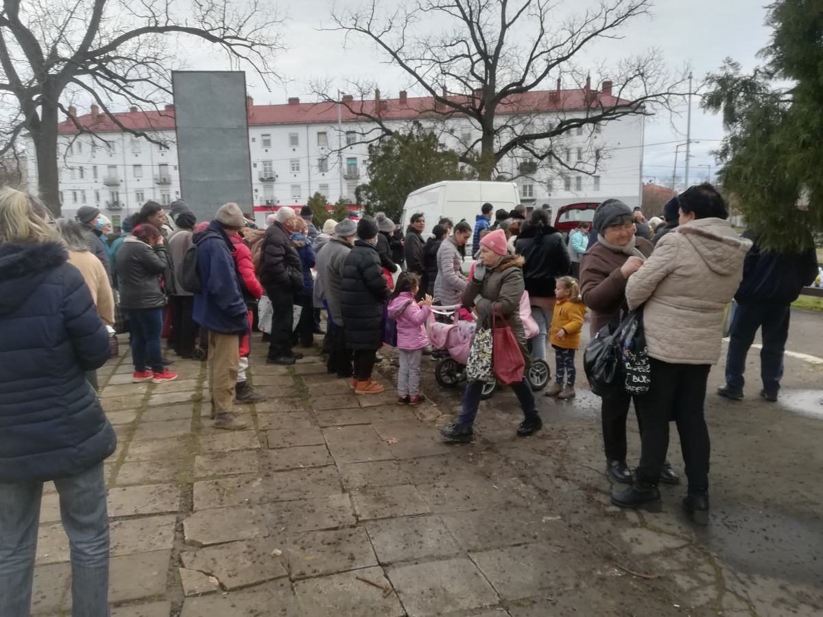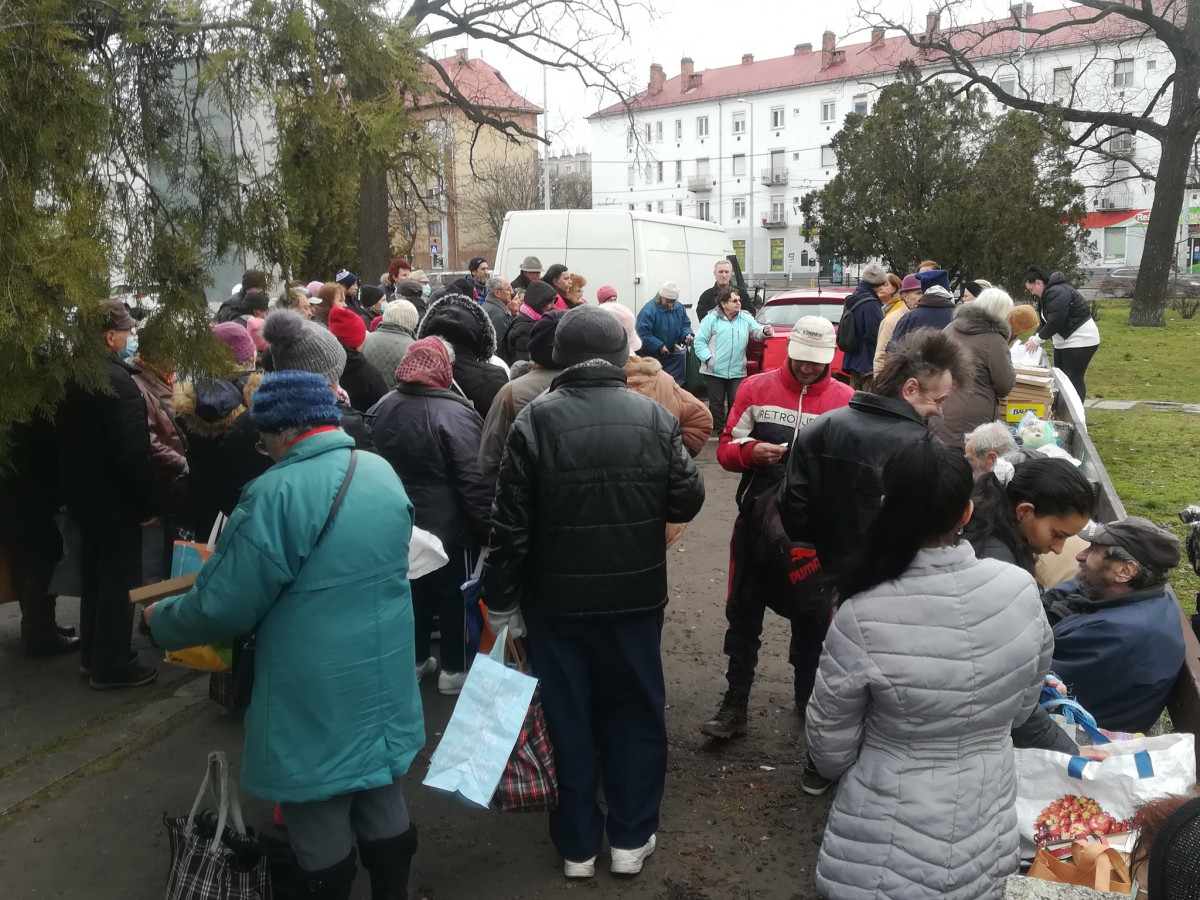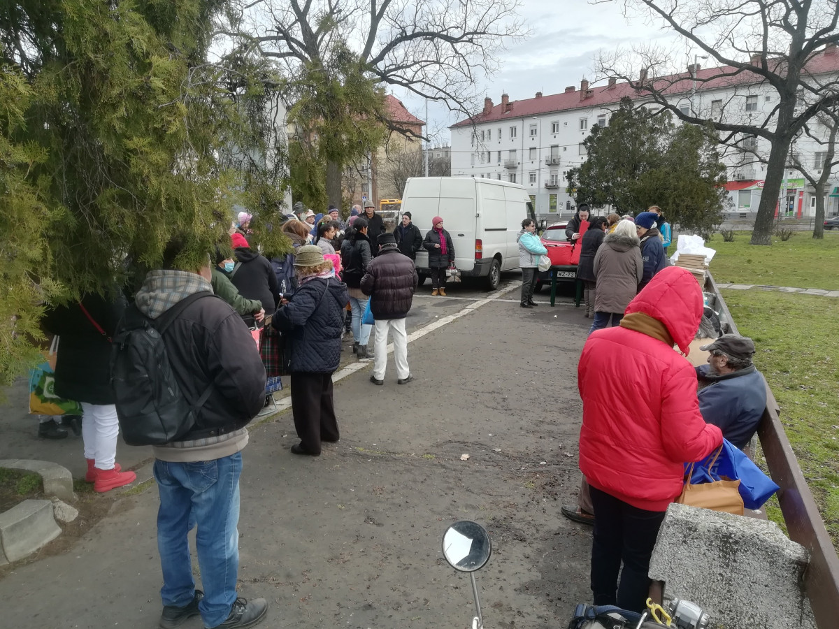 Már jóval, egy órával a kezdés előtt legalább nyolcvanan álltak a sorban, és folyamatosan jöttek az ételre várók. A hó vége bizony sok kisnyugdíjas, többgyermekes család számára okoz megoldhatatlan nehézséget. Most, amikor az élelmiszerek ára a csillagos egekbe szökik, bizony a kevéske pénzből nehéz feladat a számukra, hogy a hónap második felében meleg ételt tegyenek az asztalra. Van, amikor még kenyérre sem igen futja.