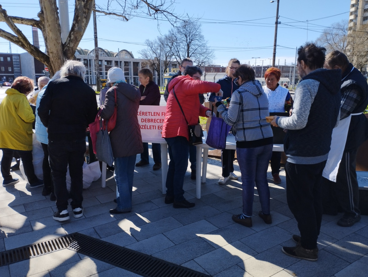 150 vendég jutott ingyen ételhez “kéretlenül” – tájékoztatta portálunkat a hétvégi debreceni ételosztást szervező Kéretlen Figyelem Debreceni Nők Közéleti Egyesülete.