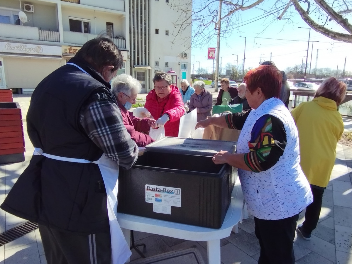 Az ételosztás végére kiosztottunk 150 adag töltött káposztát friss kenyérrel, péksüteménnyel és édességgel. Repetát már nem tudtunk adni, az utolsó morzsáig minden elfogyott.