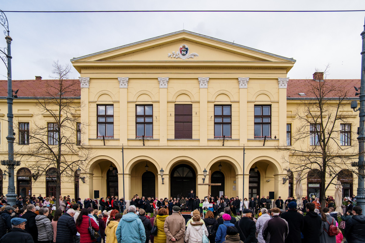 Idén a béke és az összefogás mellett a 10. Színházi Olimpia állt a virágvasárnapi városi keresztút középpontjában. A város és az egyházi felekezetek közös rendezvényén Debrecen mellett Budapest, Miskolc, Győr, Veszprém színművészei tisztelték meg jelenlétükkel az ökumenikus keresztutat.