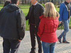 Papp László polgármester 100 tő földieper-palántát, dughagymát, és több csomag vegyes (retek, saláta, cékla) vetőmagot adott át a lakótelepen élő kertészkedők részére 2023. április 12-én.