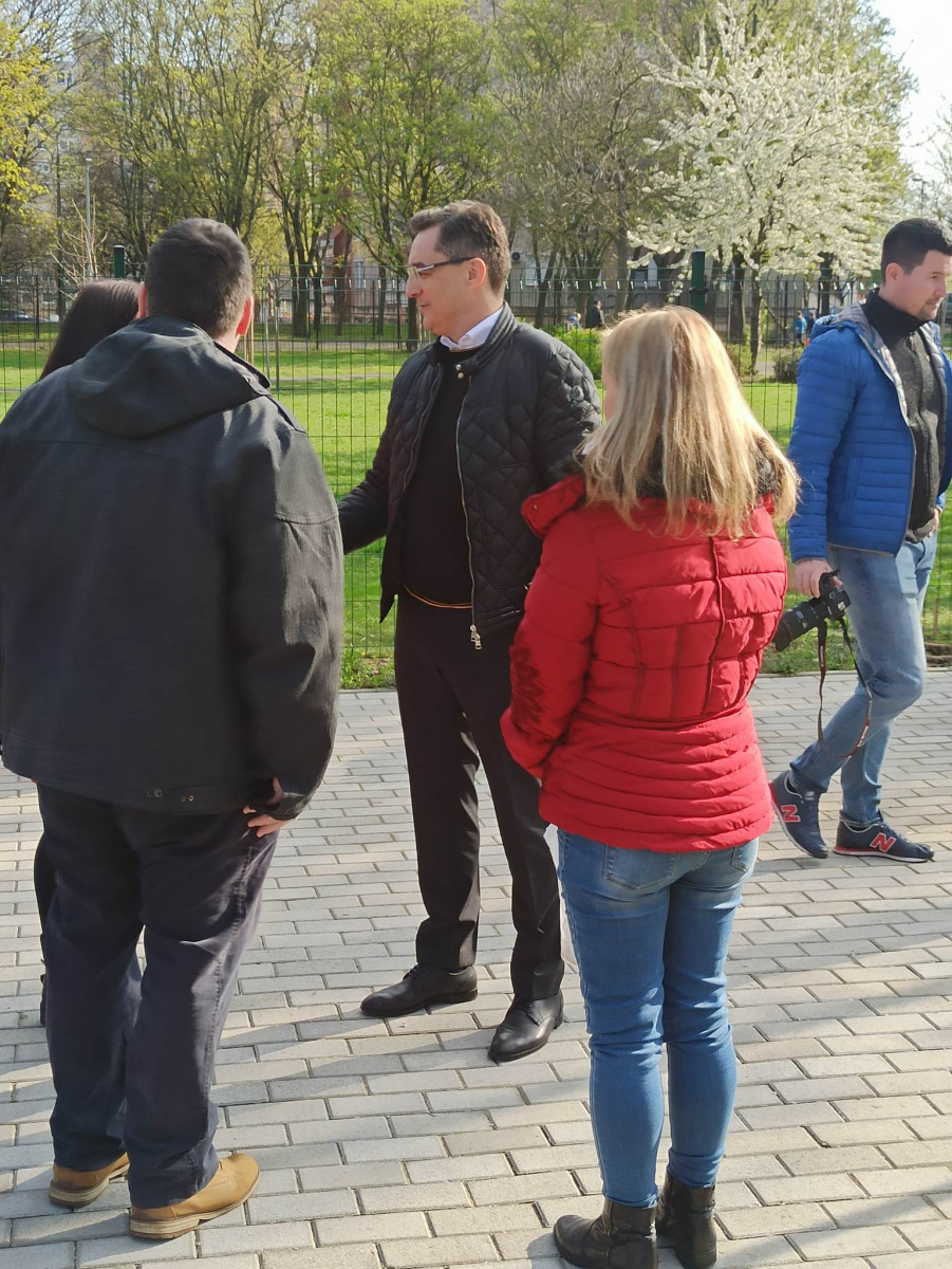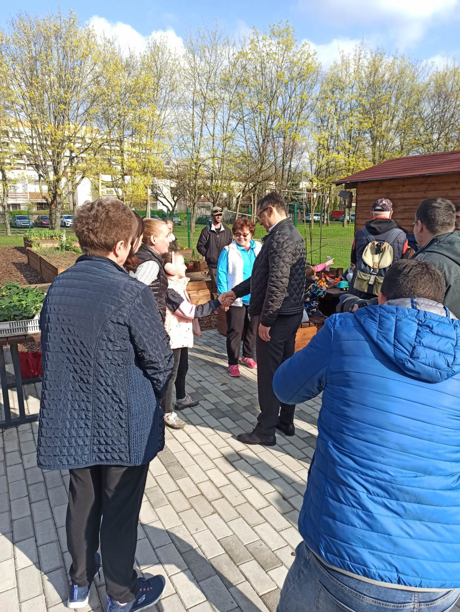 Papp László polgármester 100 tő földieper-palántát, dughagymát, és több csomag vegyes (retek, saláta, cékla) vetőmagot adott át a lakótelepen élő kertészkedők részére 2023. április 12-én.
