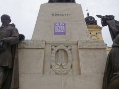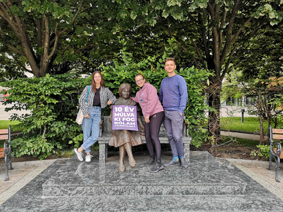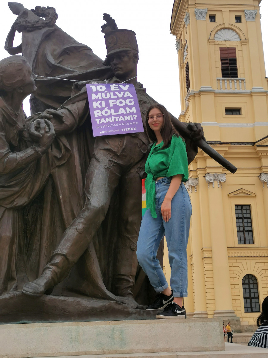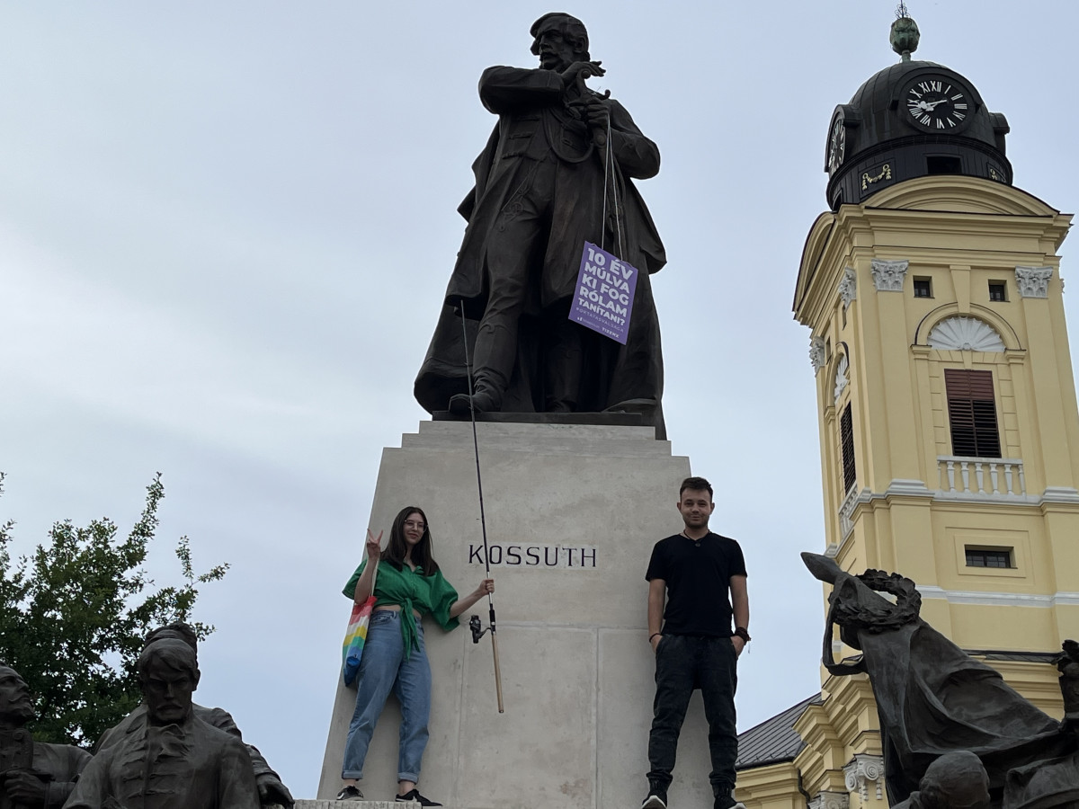 Köztéri szobrok nyakába helyezett táblákat a Momentum ifjúsági szervezete országszerte közel 50 településen. Debrecenben Szabó Bencéék akcióztak.