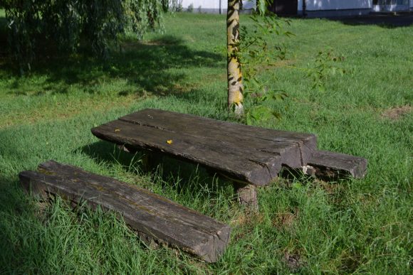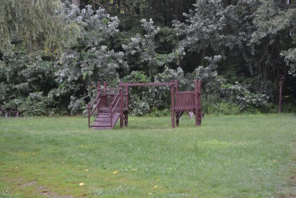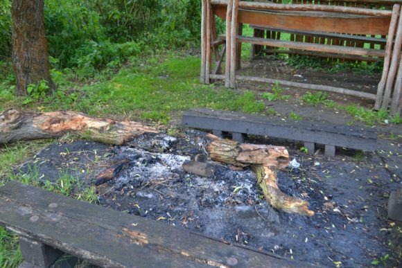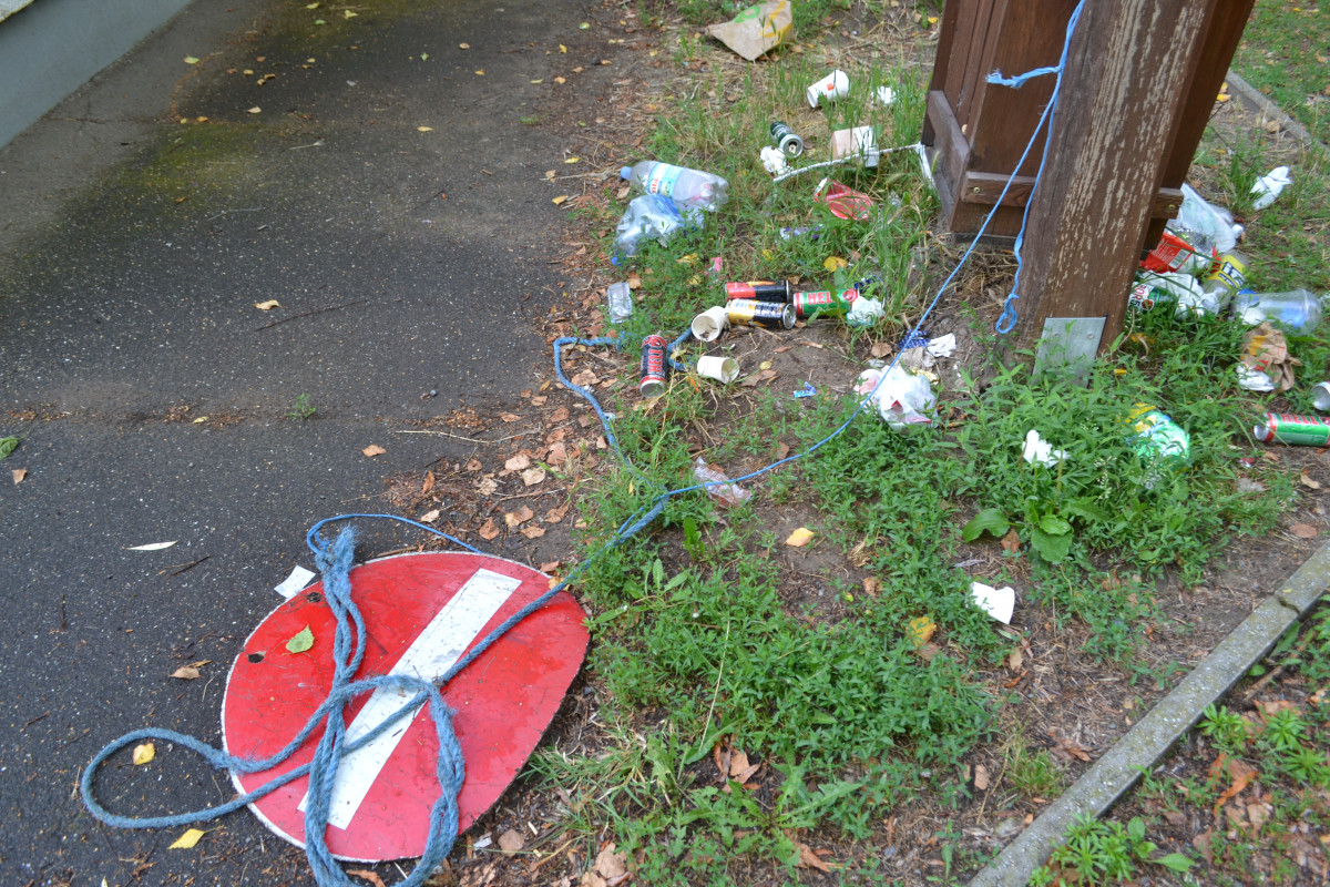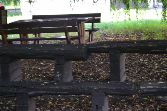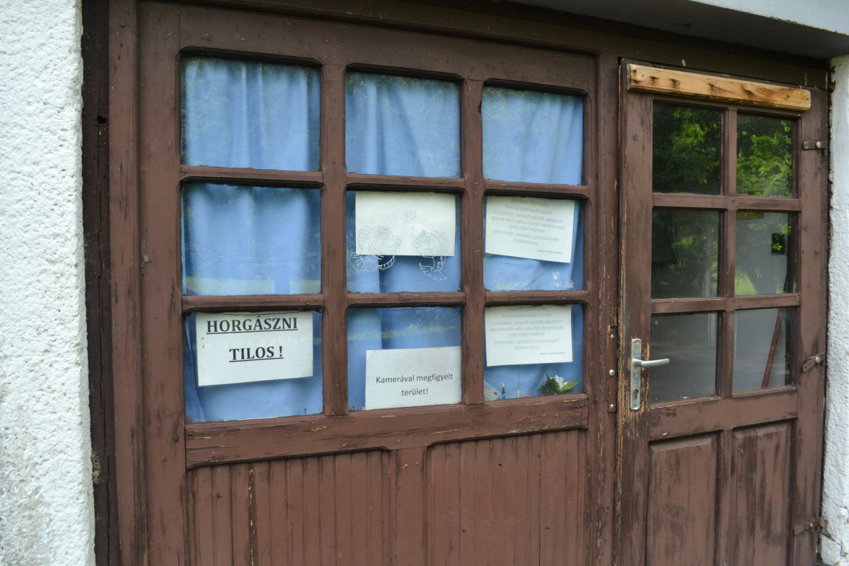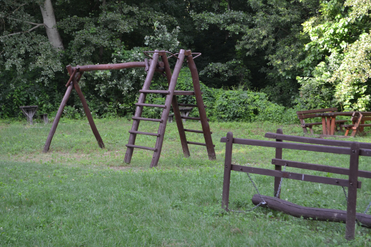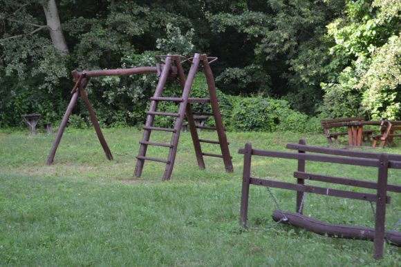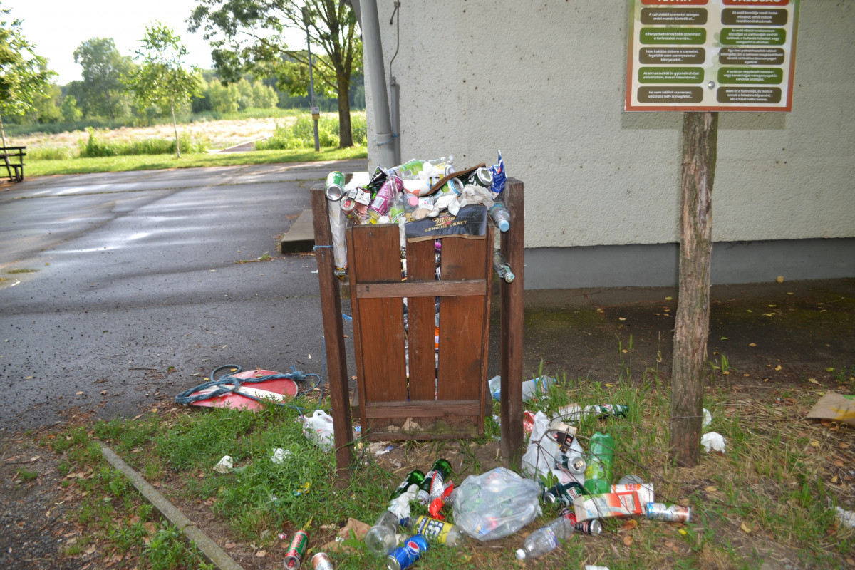 A bódénál szomorú látvány fogad. Hiába a figyelmeztető tábla, úgy tűnik, a “hazaviszem a szemetemet” kultúrkör egyelőre errefelé még nem hódított teret magának. A padok azért megvannak, a szalonnasütő-helyek is üzemelnek, a gyerekek mászókázhatnak.