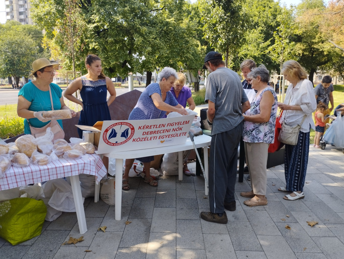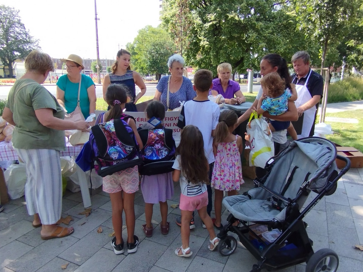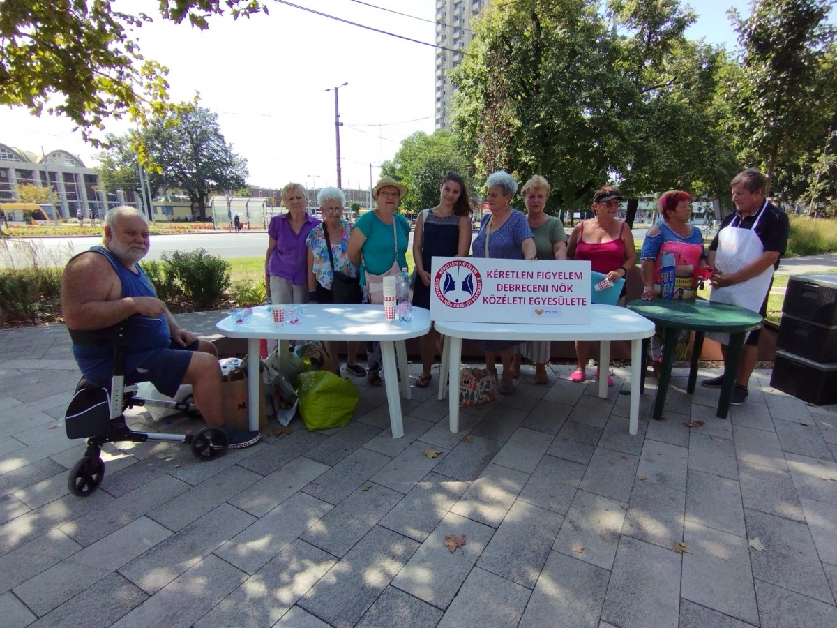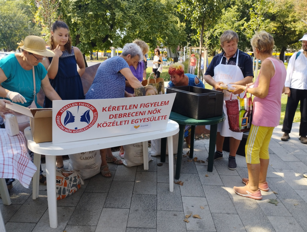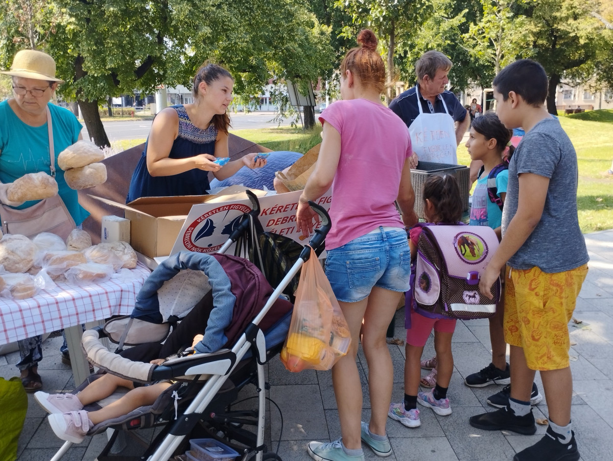 A 35 fokos forróság ellenére már a kezdés előtt egy órával gyülekeztek a Kéretlen Figyelem Debreceni Nők Közéleti Egyesületének vendégei a hó végi ételosztásra. A szervezők beszámolója.