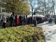 Már jóval az ételosztás kezdete előtt gyülekeztek az éhes emberek a debreceni Petőfi téren. A térre folyamatosan érkeztek a debreceniek, többségében kisnyugdíjasok. A városban rengeteg alacsony nyugdíjat kapó ember él, hiszen a rendszerváltás után a térség legnagyobb foglalkoztatói megszűntek, több tízezren lettek kényszer nyugdíjasok. Sokan “élnek” megalázóan kicsinyke nyugdíjból. Oda jutottunk,hogy sok családban a zsíros kenyér is luxus lett, egyéb ételekről már nem is beszélve. A zöldségekről, gyümölcsről álmodni sem mernek, számukra megfizethetetlenek.