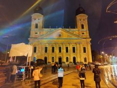 Aki viszont sikerrel vette ezt az akadályt, az nem csalódott a látványban. A kezdés előtt a szervezők a koraszülöttek világnapjának apropóján lila színbe öltöztették Debrecen ikonikus templomát, majd megindult a fényjáték.