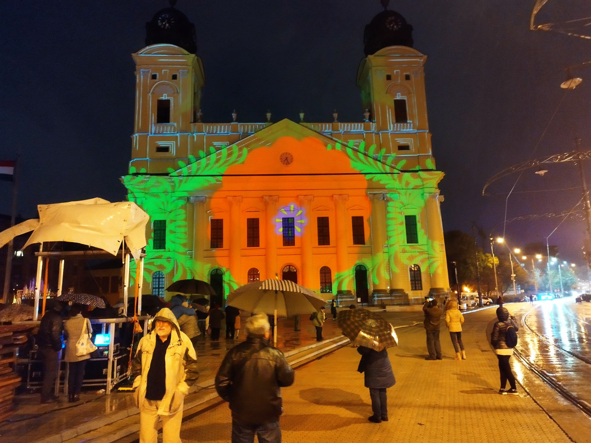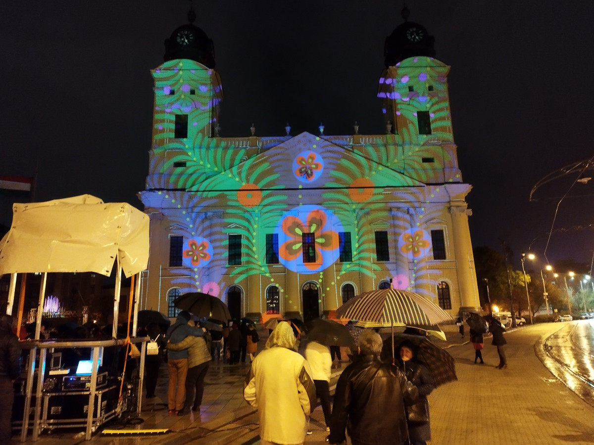 Aki viszont sikerrel vette ezt az akadályt, az nem csalódott a látványban. A kezdés előtt a szervezők a koraszülöttek világnapjának apropóján lila színbe öltöztették Debrecen ikonikus templomát, majd megindult a fényjáték.