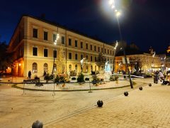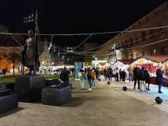 A téliesített Dósa nádor téren, a Szent István szobornál lévő szökőkutak helyén rögtönzött kisvasút és barokk stílusú körhinta várja az érdeklődőket, amit ott jártunkkor főleg a családosok vettek igénybe. Természetesen igazán akkor lesz látványos és ünnepi a milliő, ha a fényeket is bekapcsolják, de így is jó érzés volt sétálni a belvárosban egy pohár forralt borral a kezemben. Apropó forralt bor: többfélét is árulnak, így lehet epres, áfonyás, és unicumos változatot is kóstolni, de klasszikus karácsonyi puncsot és annak alkoholmentes gyerekváltozatát is kortyolhatjuk. Egységesen két deciért 800 forintot kérnek el, az elmaradhatatlan kenyérlángost pedig többféle feltéttel 1800 forintért kínálják. A ünnepi időszak állandó kelléke a műjégpálya is, ami a hírek szerint kedden nyílik meg.