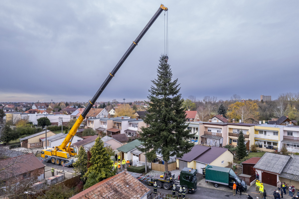 Hétfőn érkezik – a katasztrófavédelem szakembereinek, a honvédség és a rendőrség munkatársainak közreműködésével – az ország karácsonyfája a Kossuth Lajos térre. A fenyő eddig egy hajdúszoboszlói családi ház kertjét díszítette – közölte korábban az Országgyűlés Sajtóirodája.