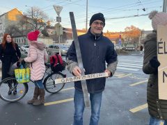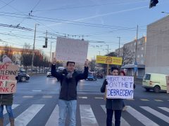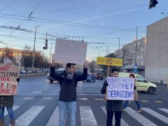 Szerda reggel a Kossuth utca-Klaipeda utca sarok déli oldalán lévő gyalogosátkelőhelyen megkezdték demonstrációjukat a ZebraSzerda Debrecen szervezői.