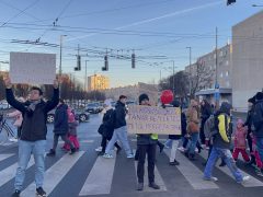 Az esemény szervezői nem véletlenül választották a Kossuth utca-Klaipeda utca sarok zebráját: szeretnének minél több szülőt megszólítani az iskolák közelében.