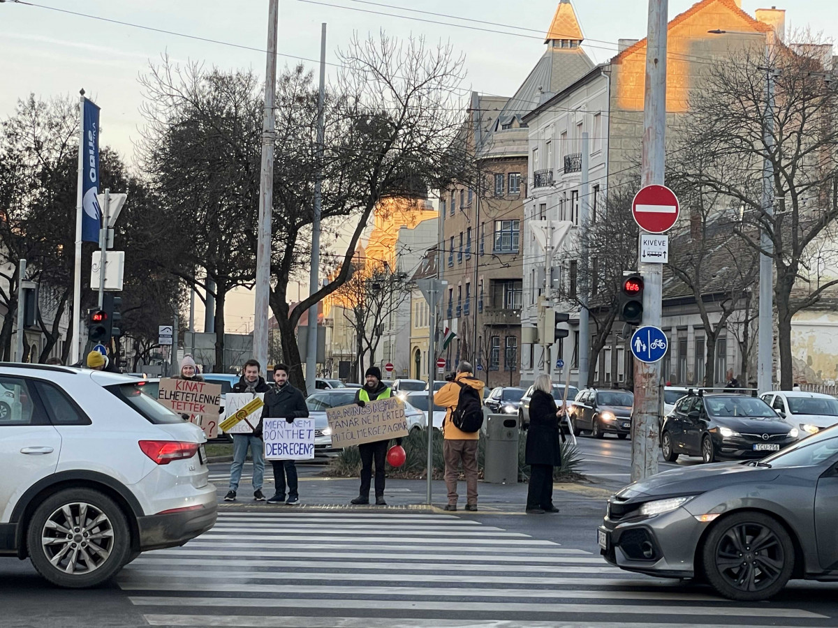 Szerda reggel a Kossuth utca-Klaipeda utca sarok déli oldalán lévő gyalogosátkelőhelyen megkezdték demonstrációjukat a ZebraSzerda Debrecen szervezői.