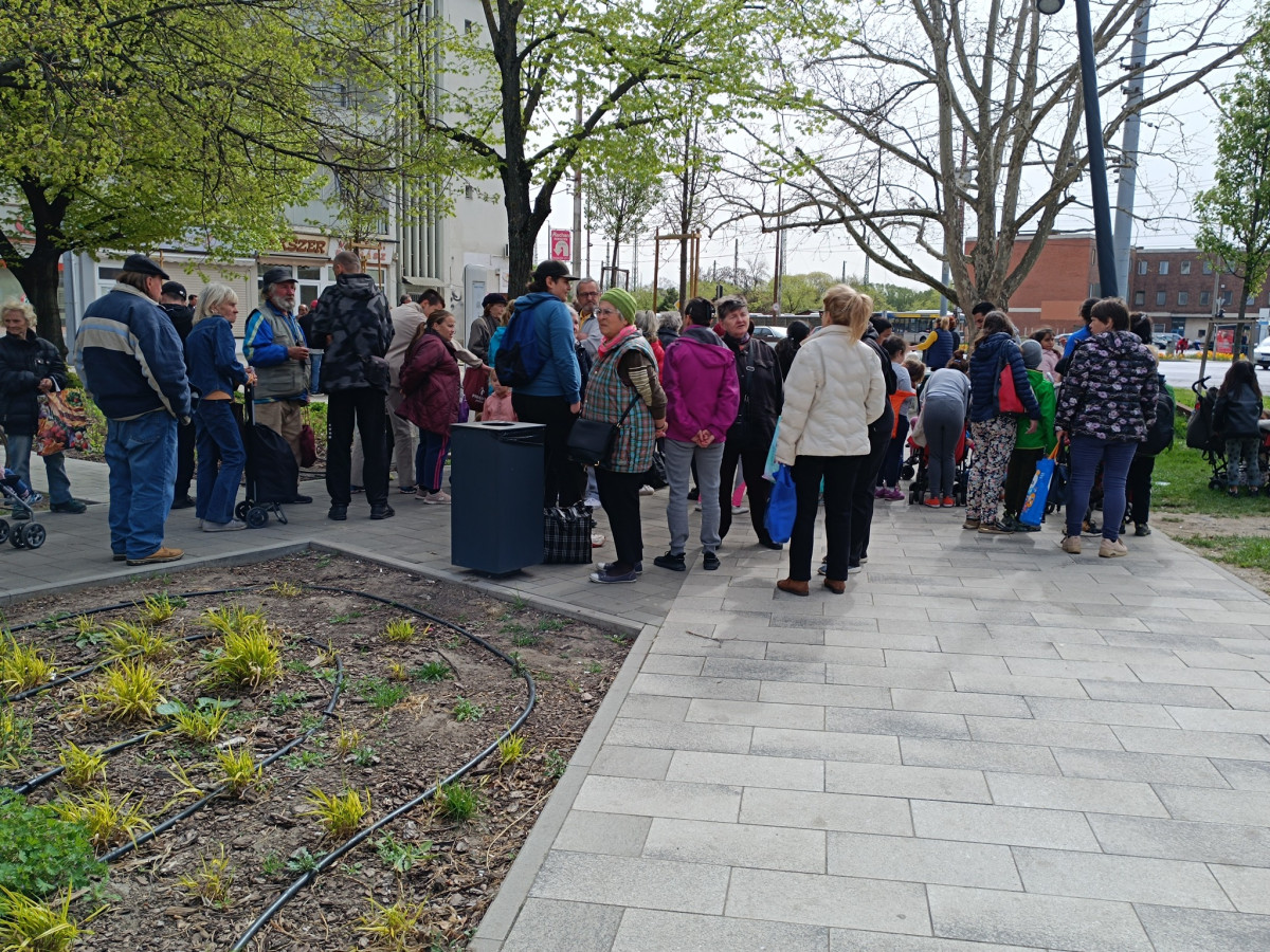 Sokan már másfél órával az ételosztás kezdete előtt beálltak a sorba. Tíz órakor jóval több mint százan voltak, és az emberek csak jöttek és jöttek. A nap végén szomorúan összegezhettük, mind a 150 adag töltött káposzta elfogyott, a később érkezőknek már csak kenyeret, péksüteményt tudtunk adni.