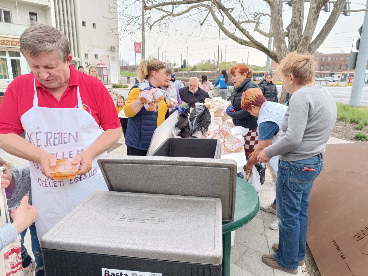 Megdöbbentő volt látni, hogy sorban érkeztek a szegények, köztük rengeteg új arc, akik most jöttek először. Szívünk összeszorult, amikor láttuk, az ország második legnagyobb lélekszámú városában hányan élnek a társadalom peremén, élére rakva kevéske pénzüket. Megtört, az élet és a nélkülözés által meggyötört magyar emberek várták, hogy egy tányér töltött káposztához, friss kenyérhez, húsvéti kalácshoz jussanak.
