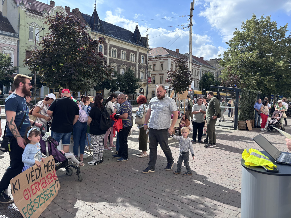 A debreceni kormányablak előtt tüntettek péntek délután a Mikepércsi Anyák a Környezetért Egyesület és Zebraszerda aktivistái, valamint szimpatizánsaik.