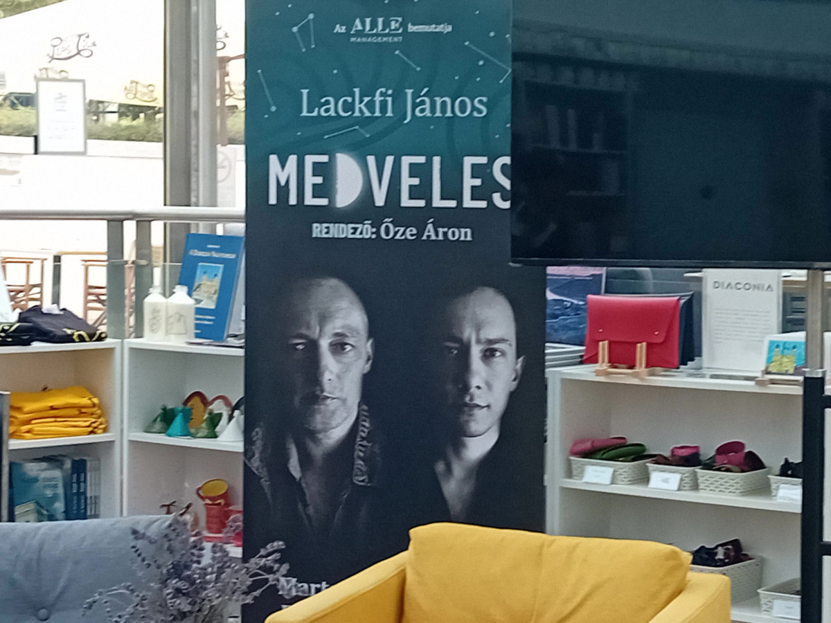 Lackfi János legújabb drámája, a ’Medveles’ volt annak a beszélgetésnek az apropója, amelyen az írón túl a színészek, Csiby Gergely, Marton Róbert, illetve mint produkció vezető, Porkoláb Gyöngyi osztották meg gondolataikat. A beszélgetésnek az 1517 Könyvesbolt és Kávézó adott otthont.
