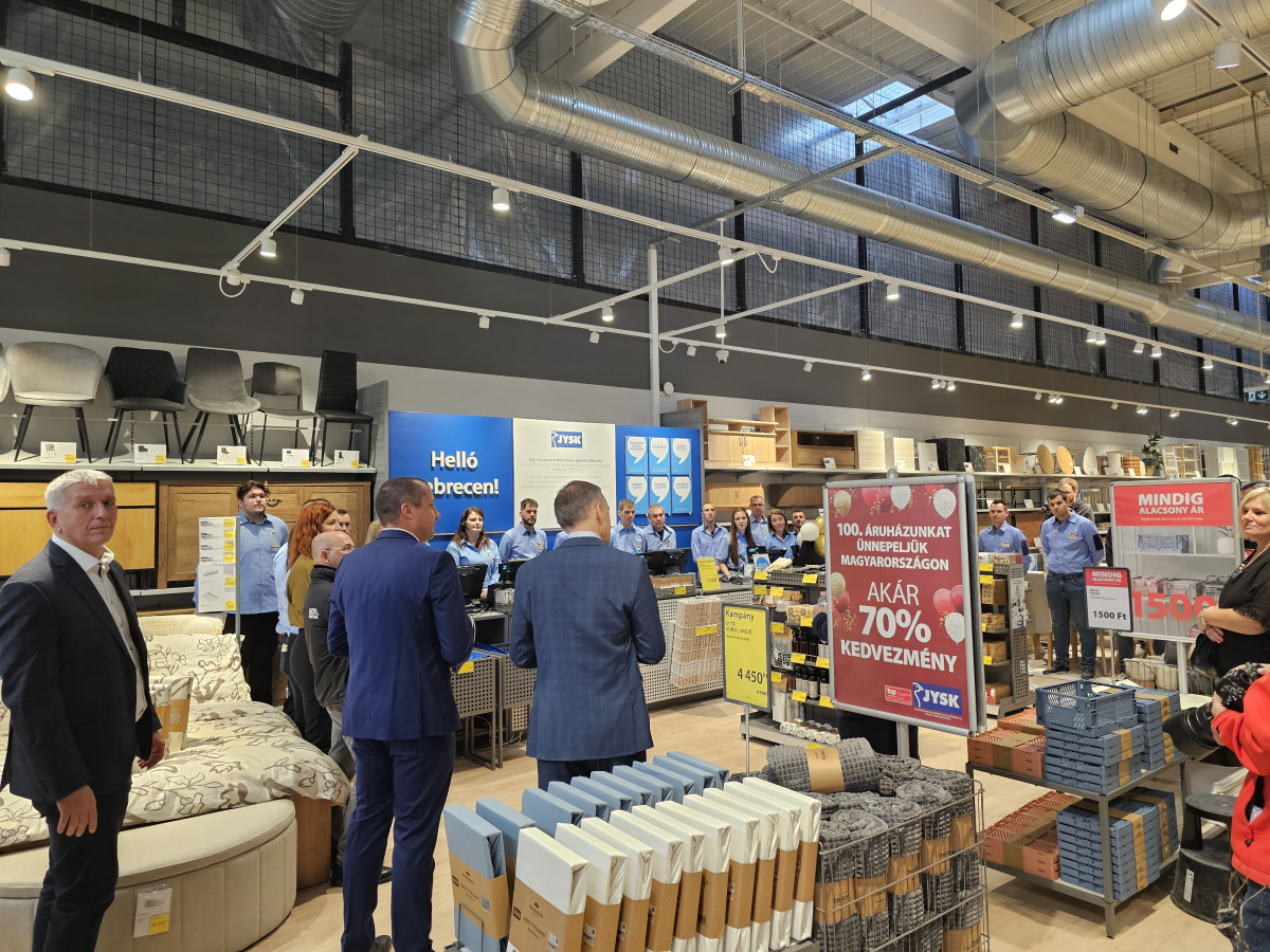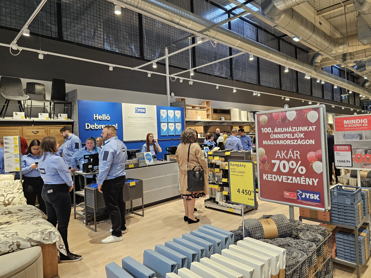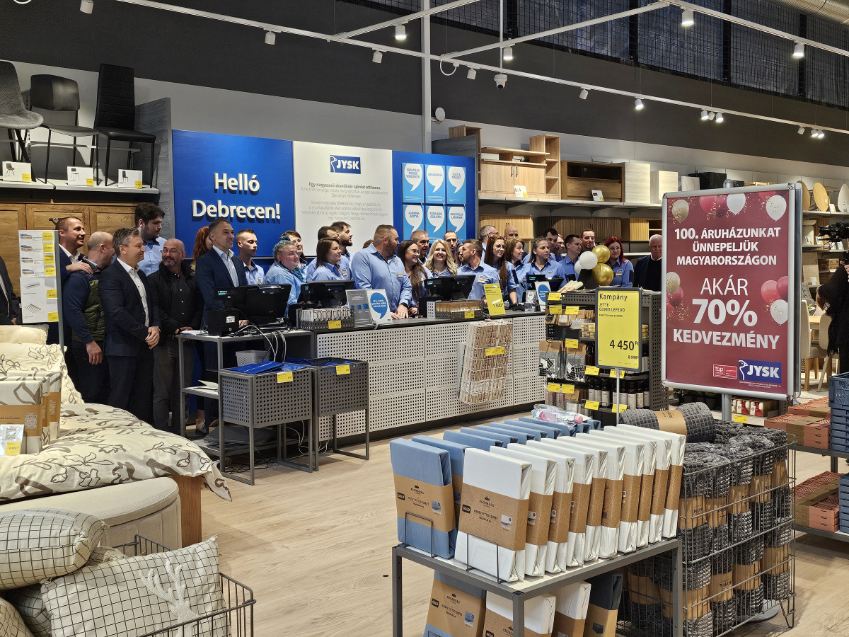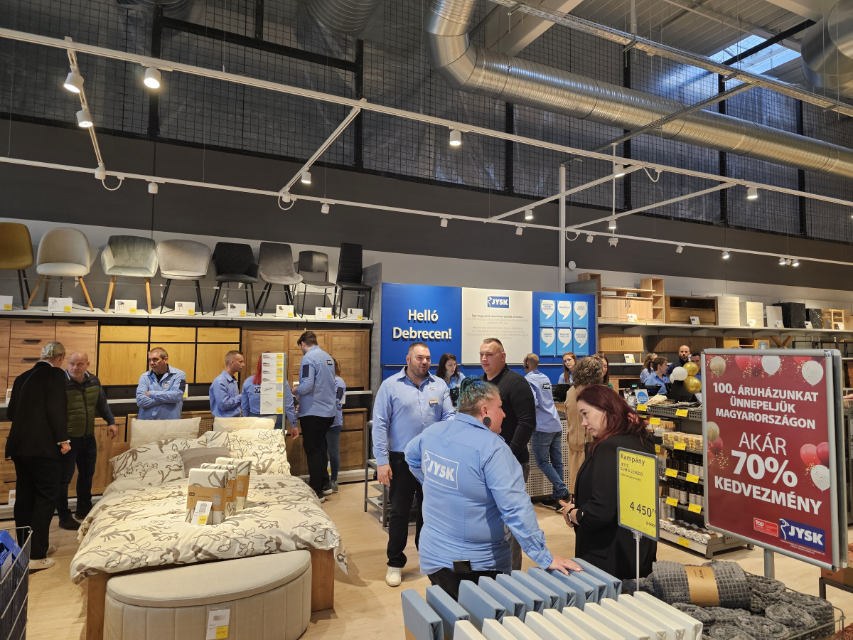 Október 24-én, Debrecenben ünnepélyesen átadták a JYSK legújabb, immár 100. magyarországi áruházát. Az új bolt a Kishegyesi úti TESCO Extra épületében található, ahol reggel 9 órakor nyitotta meg kapuit az érdeklődők előtt. Ez a harmadik JYSK áruház Debrecenben, amely egyben fontos mérföldkő a dán lakberendezési lánc magyarországi történetében.