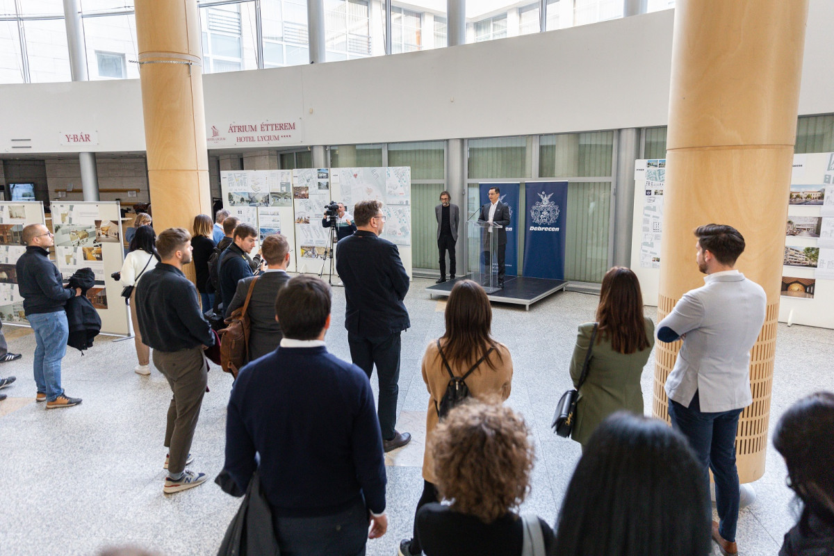 Gábor István főépítész köszönetet nyilvánított a magyar építész szakmának az önkormányzat nevében. Mint mondta, igen összetett a térrendszer, ami helyet ad ennek a központnak és nem egyszerű megtalálni a módját, hogy egy érvényes, jól működő kulturális tér alakuljon ki, ami nem csak Debrecen, hanem a nagy régió, akár az ország számára is értékes lesz. A főépítész ismertette a pályázat eredményét, ami szerint a bíráló bizottság úgy döntött, hogy három pályamű részesül díjazásban, négy pedig megvételben.