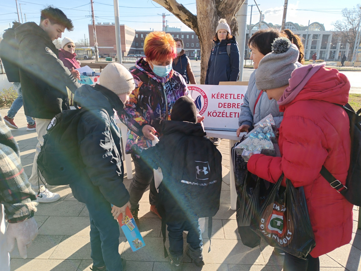 Soha ennyien nem voltak még a karácsonyi ételosztásainkon, és nagy örömünkre soha ennyi debreceni polgár nem segített. Elöntötte szívünket a boldogság, amikor kezdésig szinte percenként érkezett újabb adomány. Igazi terülj asztalkámot varázsoltak a nemes lelkű debreceniek, mindannyiunk örömére. Mindenkinek, aki kihozta adományát a Petőfi térre tiszta szívből hálásak vagyunk. Vannak még jó emberek, ahogy mondani szoktuk, igazi “szívemberek”. Külön köszönjük a Fornettinek az adományát, az egyik legjobb debreceni cukrászda finom süteményeit, és a pékségnek a kenyeret, a péksüteményeket. Köszönjük Katikának a finom töltött káposztát, hálásak vagyunk 15 éves munkájáért.