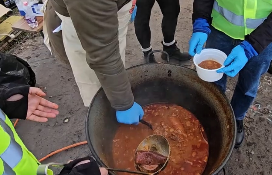 A helyszínen megtudtuk, az adagokat nagyon gyorsan elkapkodták. Az ételt két üstben készítették, így 100-150 adag készült el egyszerre.