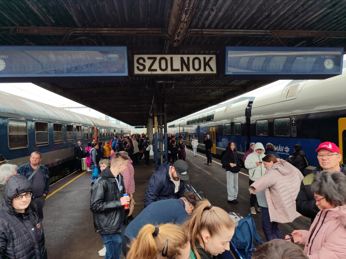 A Budapest felé közlekedő vonatok tömve vannak a Magyar Péter beszédére (15 óra, Andrássy út) igyekvő Tisza-hívekkel.