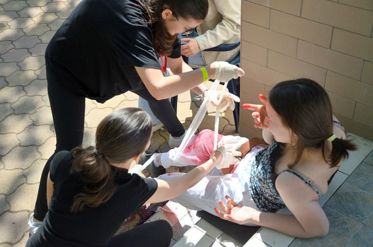 Áramütéses, eszméletlen beteg társaságában a harsány, darázscsípést feltételező lány, aki követeli, szúrják be nekik az elsősegélynyújtók az epipent (amit a tünetmentes betegnek nem szabad beadni) – ez csak egyetlen jelenet az egyik baleseti kárhelyről, ahol a versenyzőknek fel kellett ismerni, mi történt, a sérülésfajtákat felismerni, mentőt hívni, megadni a helyes elsősegélyt, és mindezt csapatmunkában. A 10 perces akciókat 5 perc értékelés követte: a zsűriző mentőtisztek és szakemberek ilyenkor részletesen mindent elmagyaráztak a résztvevőknek, és tanácsot is adtak nekik.