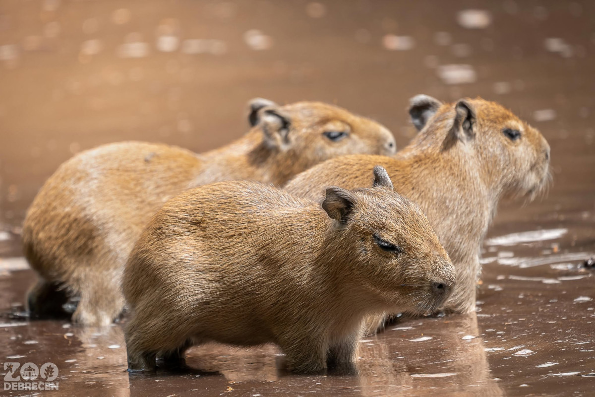 A kapibarák világnapján közölte a hírt a debreceni állatkert: Diégó és Mika három kölyökkel gyarapította a vízidisznó-családot.