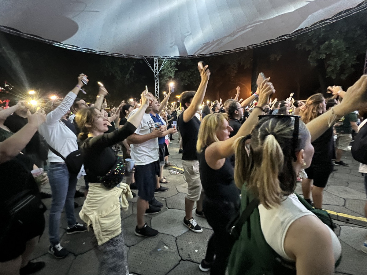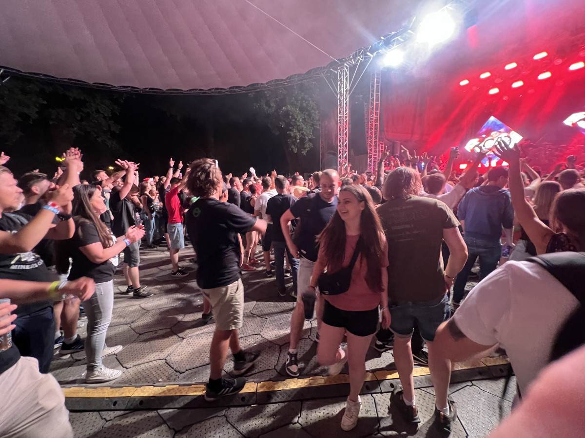 Az „Élj a mának” című dalnál különlegességként az együttes háttérszemélyzete is felment a színpadra, ami nem túl gyakori az ilyen koncerteken – legalábbis számomra ez egy ritka pillanat volt. Röviddel ezután jött az üzenetében hasonló „Egyszer élünk”, majd a négybetűs, sokatmondó M.A.T.T. is, amely a Merni, Akarni, Tenni, Tudni szavakból áll össze.