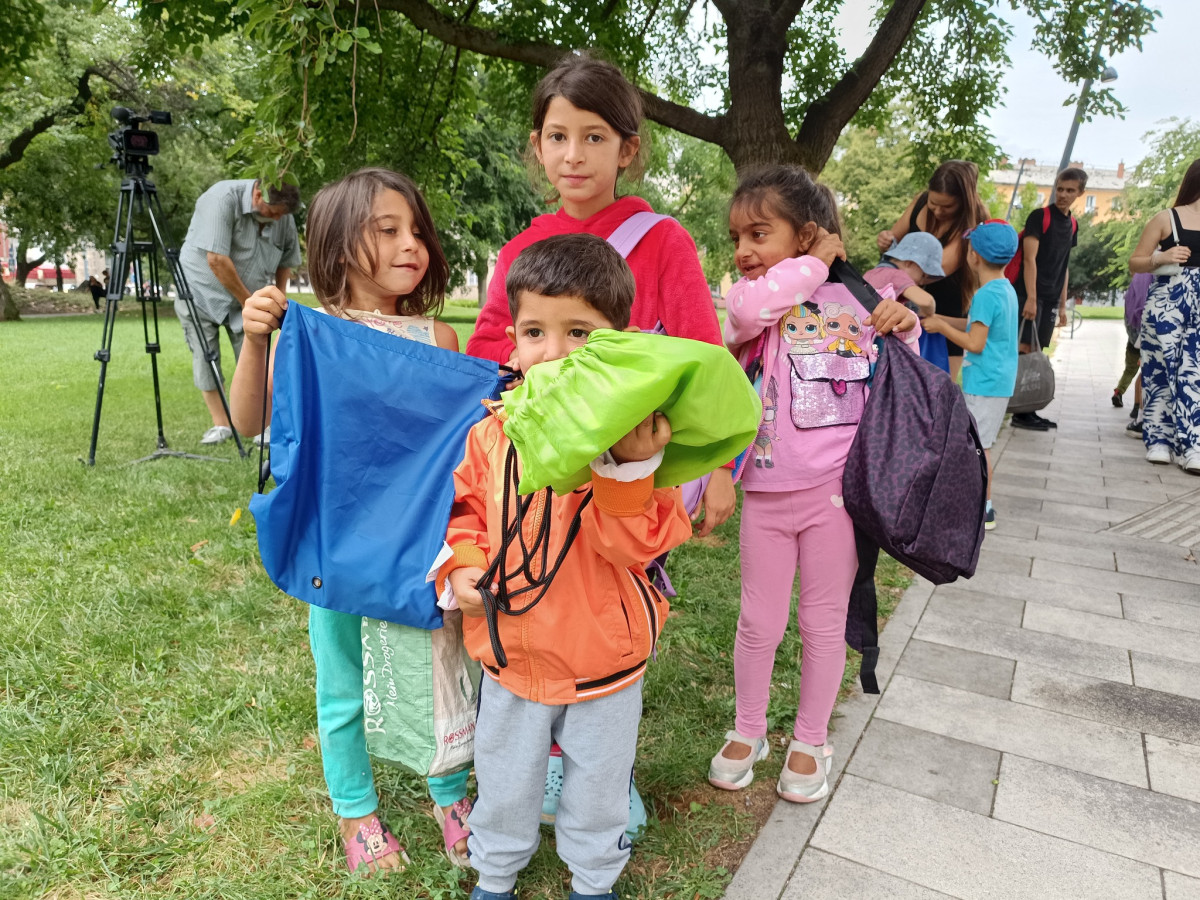 Jövő héten kezdődik a tanév, ezért az ételosztást tanszerosztással is egybekötötték. Azoknak a családoknak tudtak a beiskolázáshoz segítséget adni, akik az ételosztásainkra járnak, és iskoláskorú gyermekeik vannak. Közel 70 gyermek kapott tanszert, iskolatáskát, könyveket.