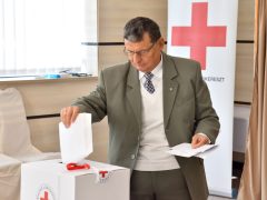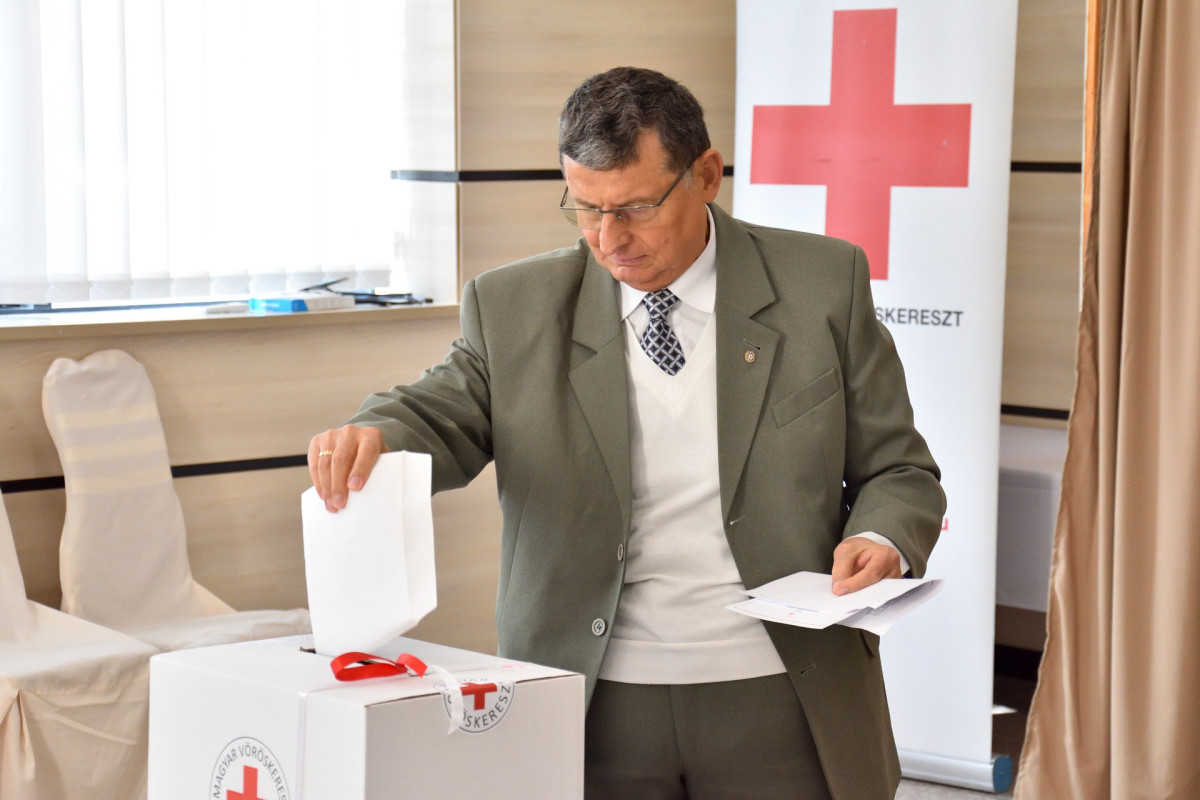 A tisztújítás, azaz a választás következett – a Magyar Vöröskereszt Alapszabálya és Választási Szabályzata szerint – nyílt és titkos szavazással. Vármegyei elnökét és alelnökét újraválasztotta a testület; az elnök Dr. Lakatos Zoltán, az alelnök Oláh Miklós. Új elnöke lett a megyei ifjúsági szervezetnek: Ménes Mátyás, a vármegyei felügyelő bizottság elnöke Béke Jánosné. A választás az országos szinten folytatódik.