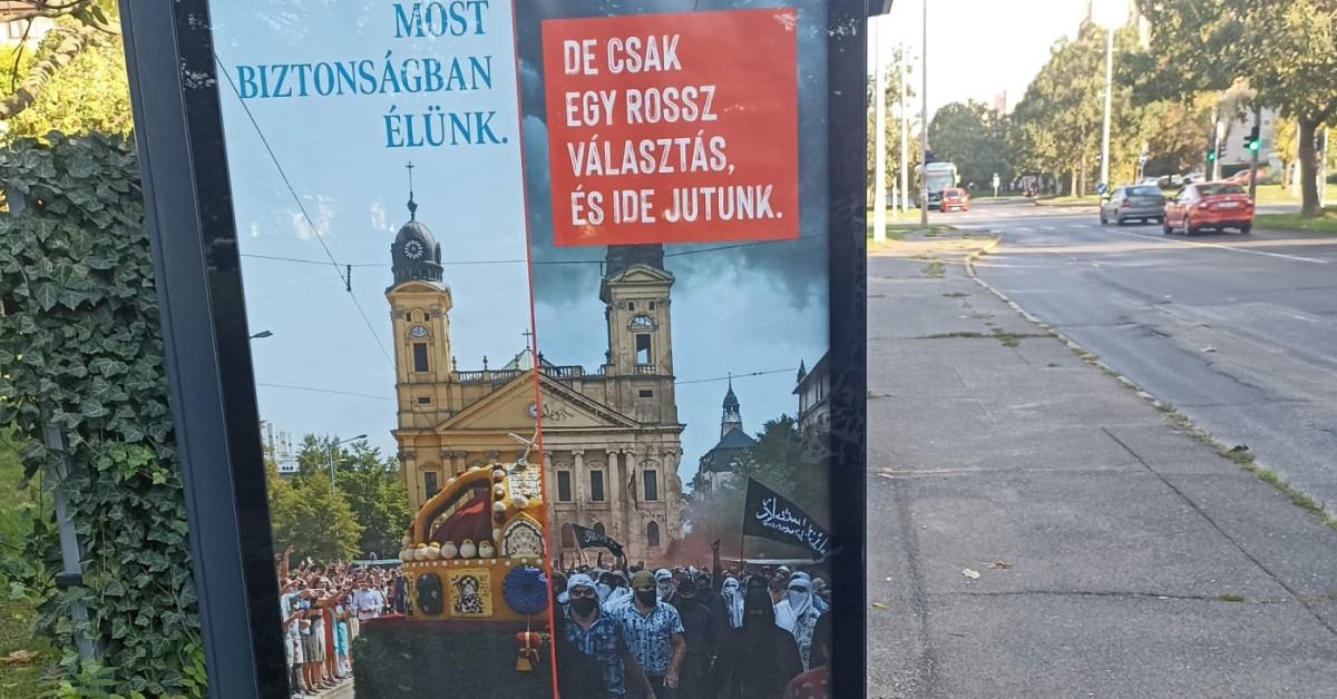 Már közterületen is díszelegnek a református Nagytemplomot hibásan, keresztekkel ábrázoló képek. A plakátokat a kormánypropaganda elrettentésül alkalmazza azok számára, akiknek már megfordult a fejében, hogy jövőre nem a Fideszre szavaznak.